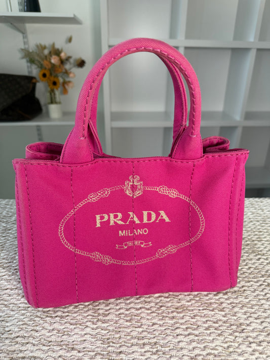 PRADA PINK CANAPA CANVAS LOGO-PRINT SMALL TOTE BAG