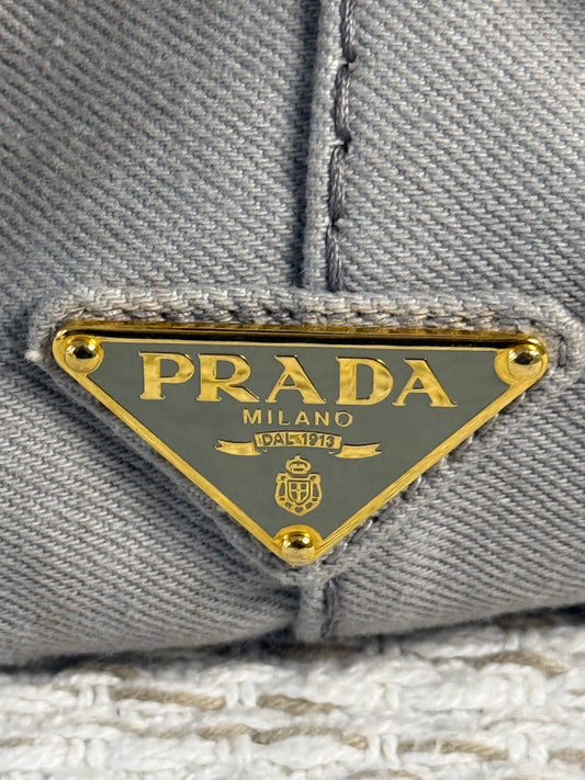 PRADA CANAPA TOTE BAG IN GREY DENIM CANVAS
