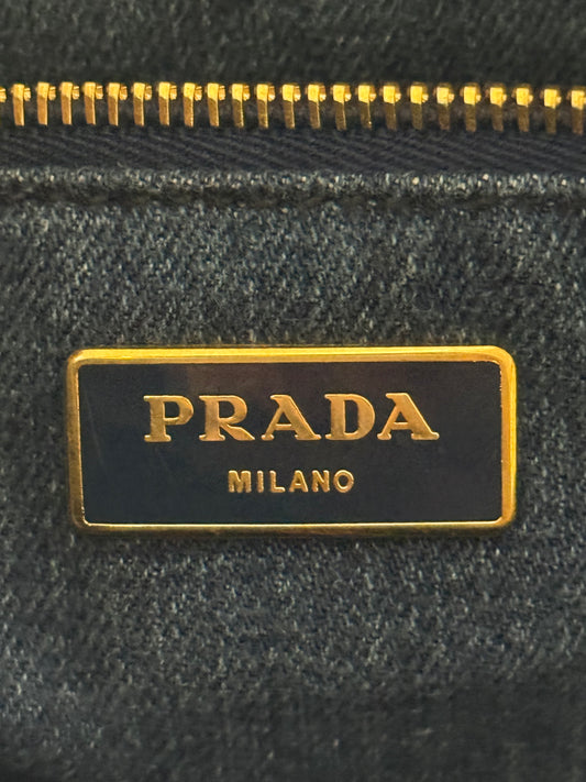 PRADA LOGO CANAPA AVIO DENIM TOTE BAG